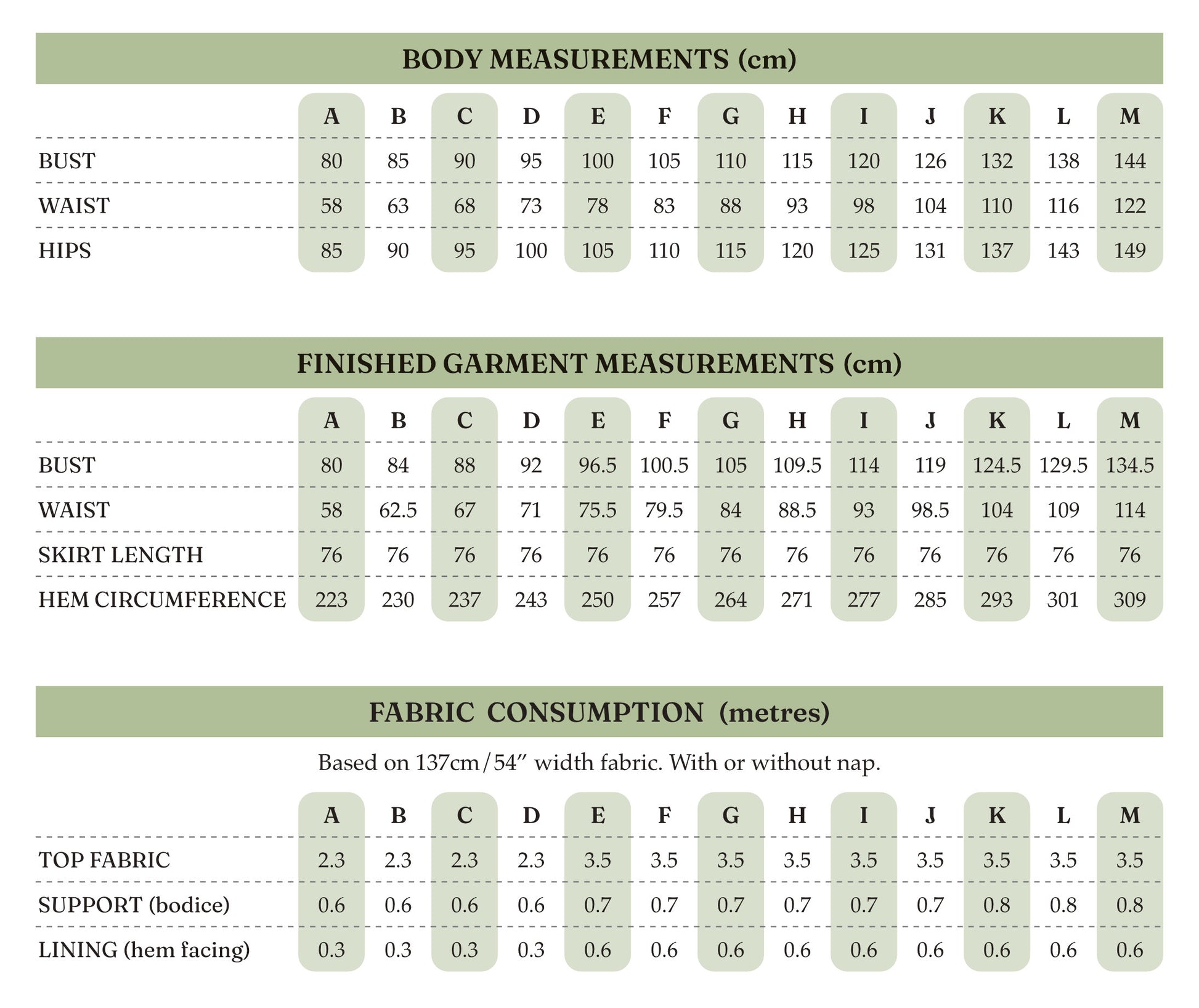 The PDF pattern includes an illustrated instructions document, print-at-home pattern files in A4 and US Letter size paper, and copyshop pattern files. There are 13 sizes included in the pattern – please see the size chart in the photos for measurements and fabric yardages. There is a grading guide available on the website if you need to adjust your pattern between sizes. Please note that PDF pattern files do not include layers.